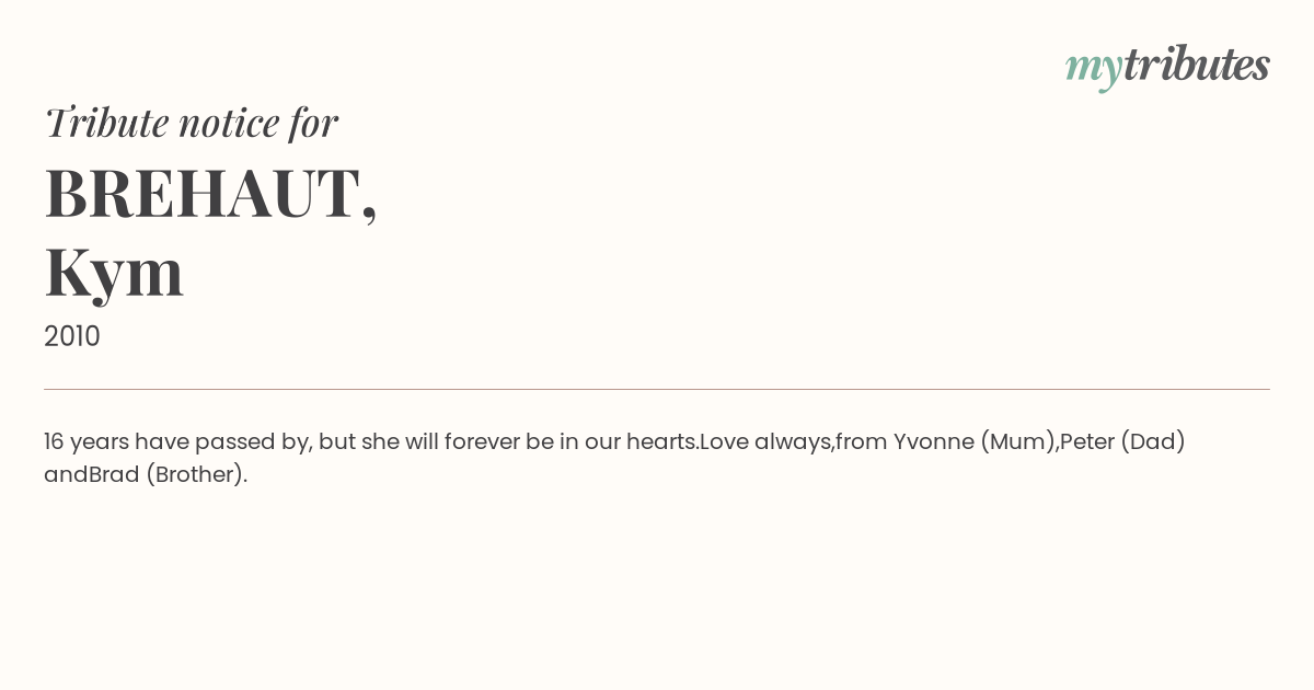 19°C16 years have passed by, but she will forever be in our hearts.