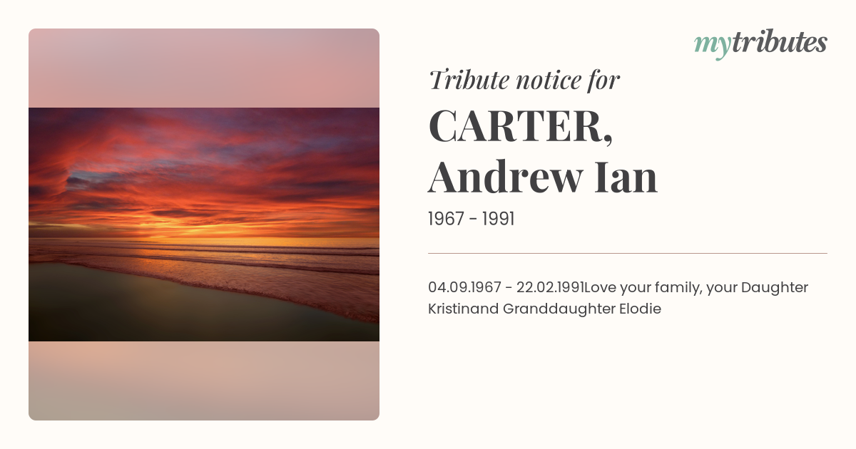 04.09.1967 - 22.02.1991Love your family, your Daughter Kristinand Granddaughter Elodie