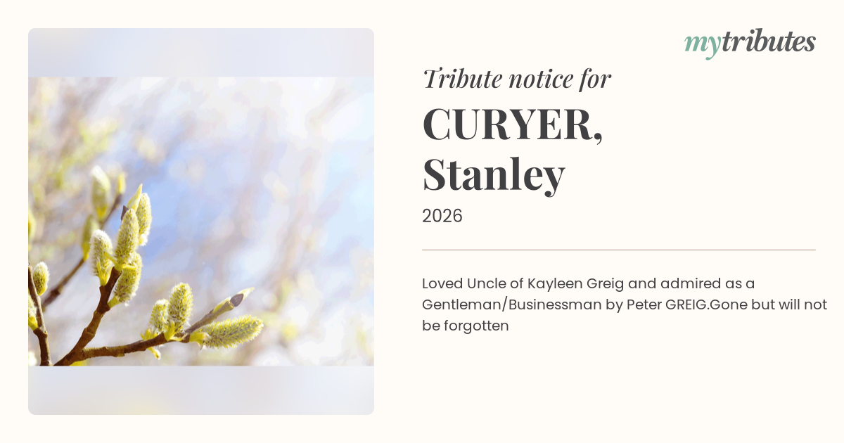 19°CLoved Uncle of Kayleen Greig and admired as a Gentleman/Businessman by Peter GREIG.