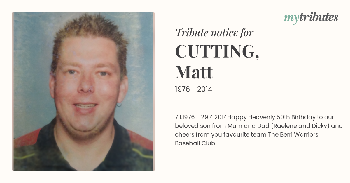 Happy Heavenly 50th Birthday to our beloved son from Mum and Dad (Raelene and Dicky) and cheers from you favourite team The Berri Warriors Baseball Club.