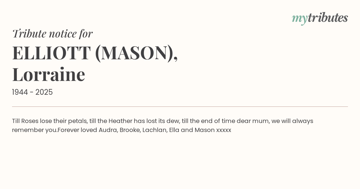 Forever loved Audra, Brooke, Lachlan, Ella and Mason xxxxx