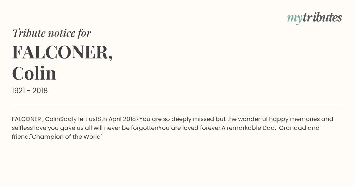 Tribute notice for