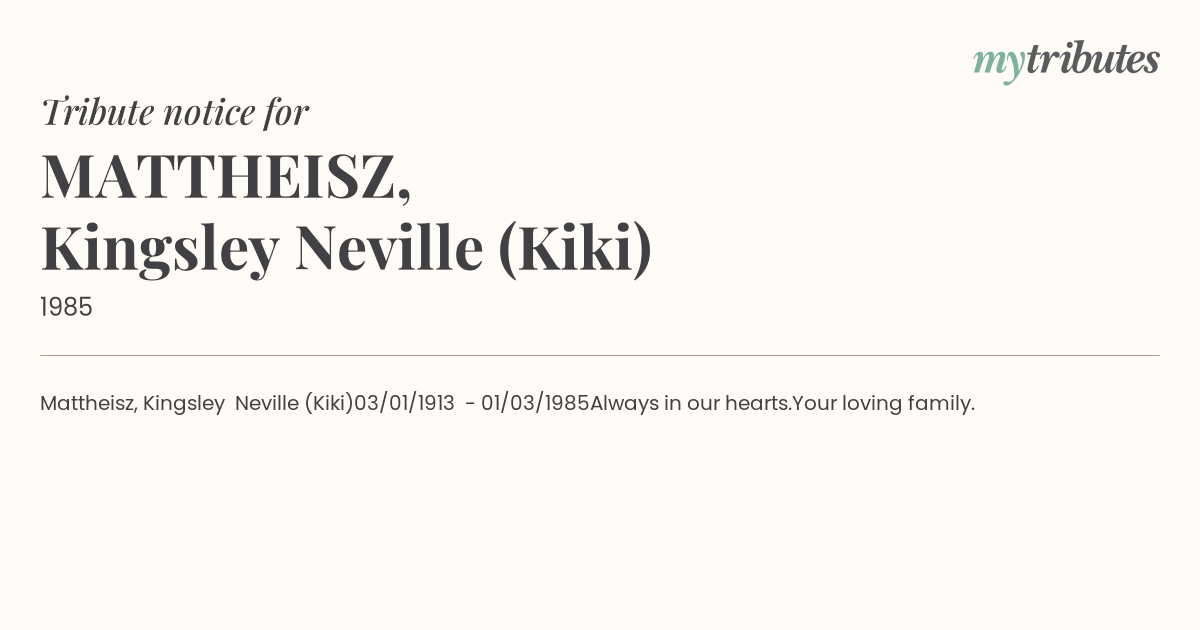 19°CMattheisz, Kingsley Neville (Kiki)