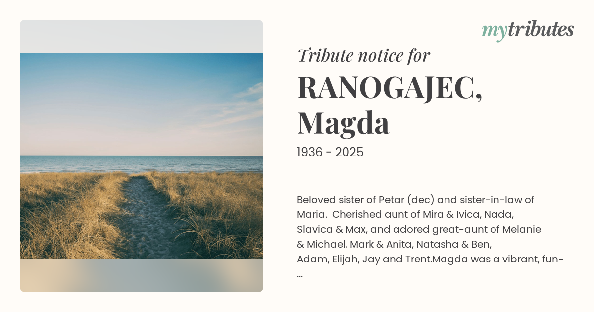Magda was a vibrant, fun-loving soul who cherished her family and brought light to every moment. Her strength, kindness, and unforgettable spirit will remain with us always. We will miss you dearly Manji.