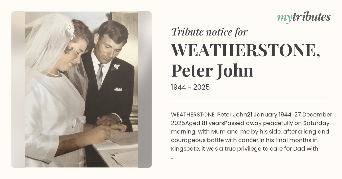 19°CWEATHERSTONE, Peter John