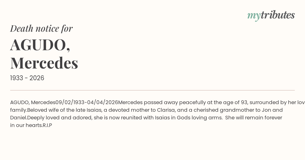Mercedes passed away peacefully at the age of 93, surrounded by her loving family.