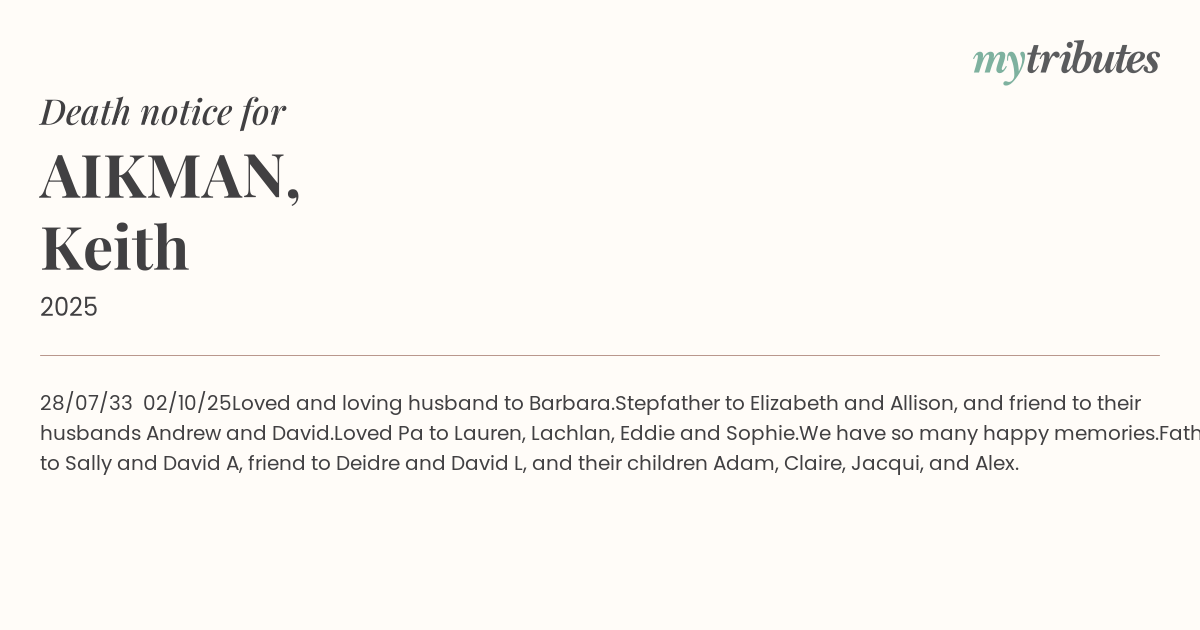 Loved Pa to Lauren, Lachlan, Eddie and Sophie.
