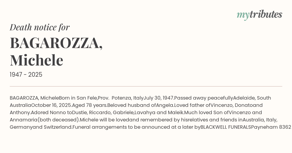 Funeral arrangements to be announced at a later by