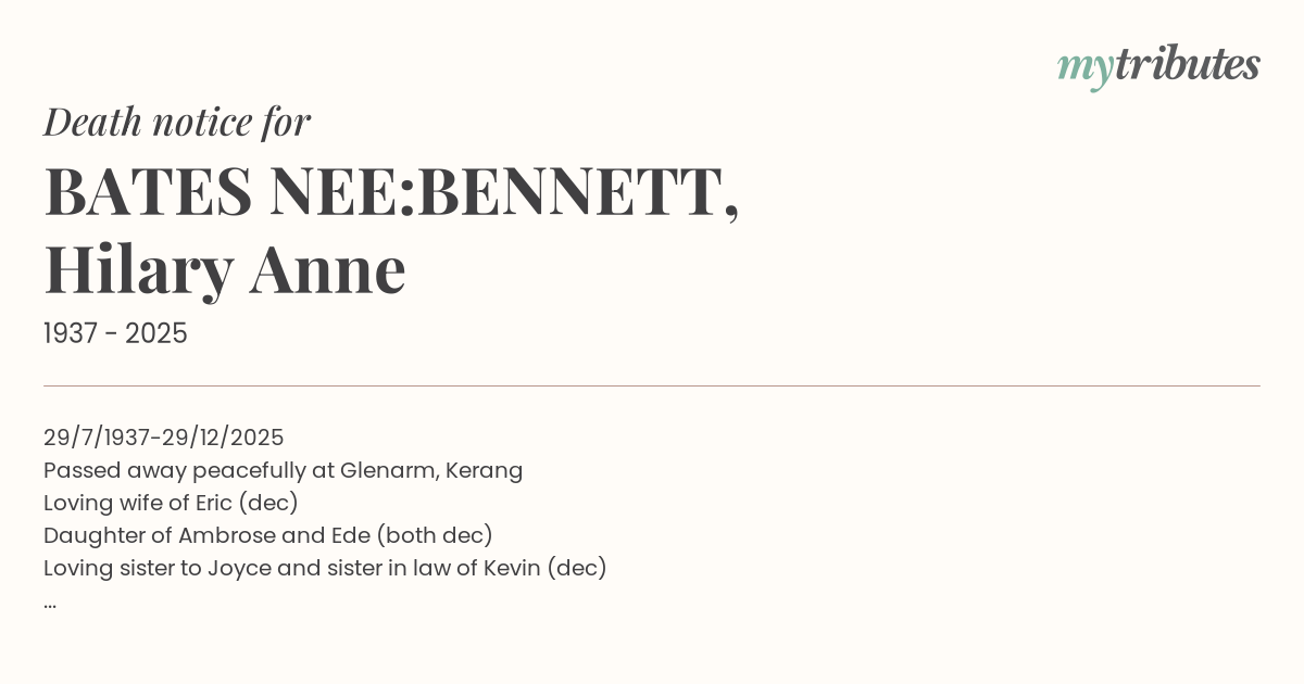 Passed away peacefully at Glenarm, Kerang