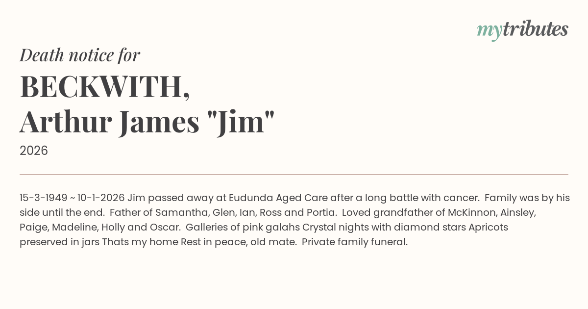 Jim passed away at Eudunda Aged Care after a long battle with cancer. Family was by his side until the end.