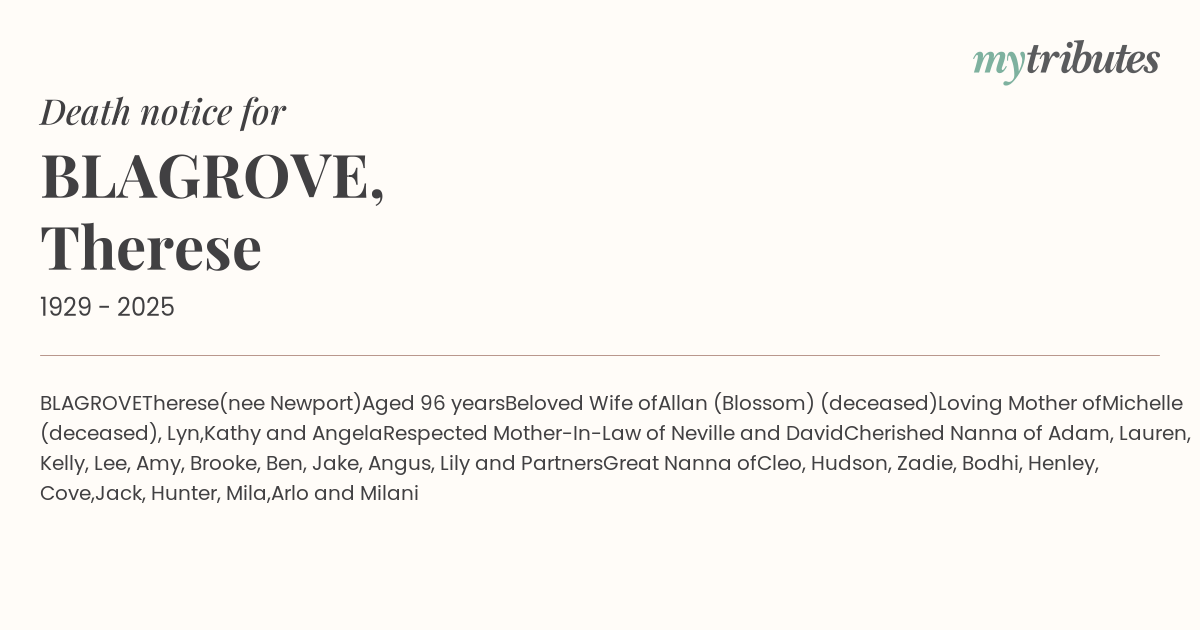Cherished Nanna of Adam, Lauren, Kelly, Lee, Amy, Brooke, Ben, Jake, Angus, Lily and Partners