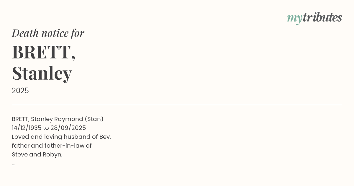 19°CBRETT, Stanley Raymond (Stan)