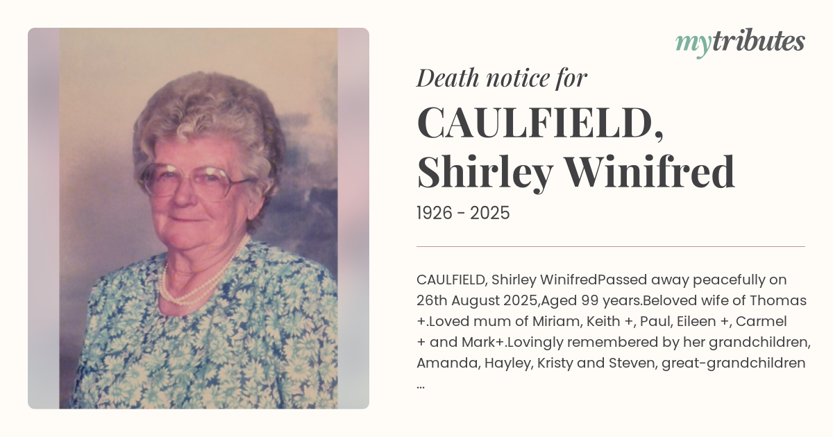 Lovingly remembered by her grandchildren, Amanda, Hayley, Kristy and Steven, great-grandchildren Rowan, Ephraim, Maisey, Sofie, Harvey and Millie