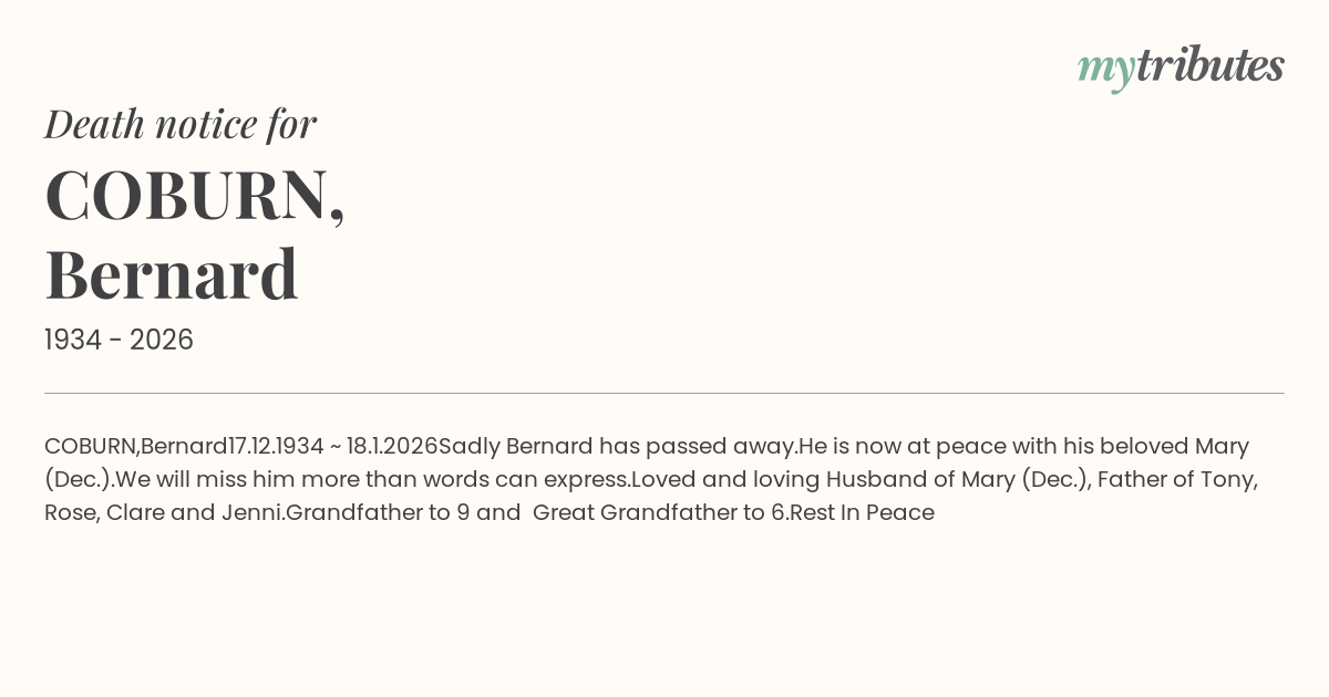 Husband of Mary (Dec.), Father of Tony, Rose,