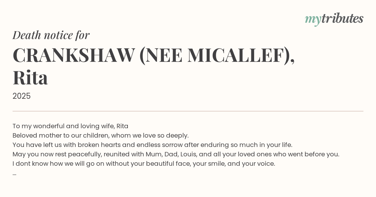 May you now rest peacefully, reunited with Mum, Dad, Louis, and all your loved ones who went before you.