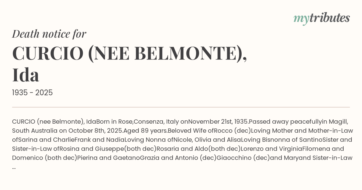 19°CCURCIO (nee Belmonte), Ida