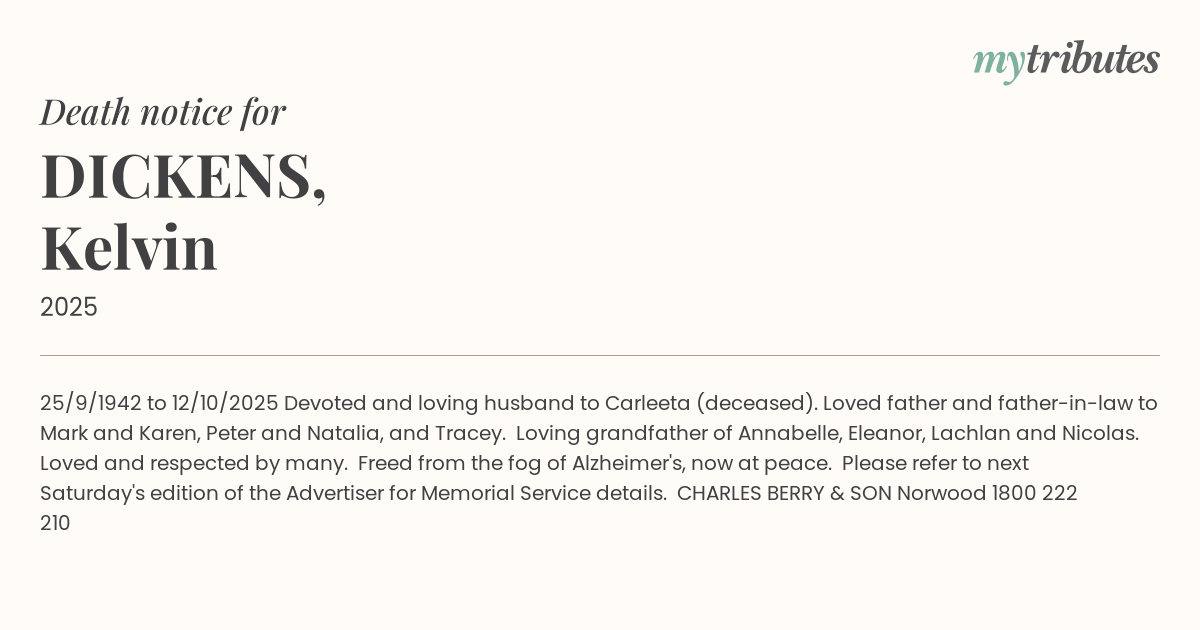 Please refer to next Saturday's edition of the Advertiser for Memorial Service details.