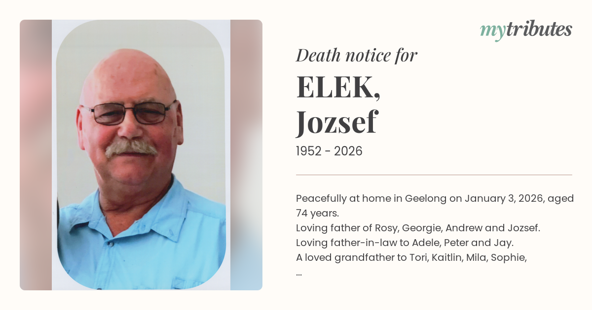 19°CPeacefully at home in Geelong on January 3, 2026, aged 74 years.
