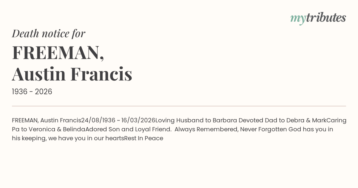 19°CFREEMAN, Austin Francis