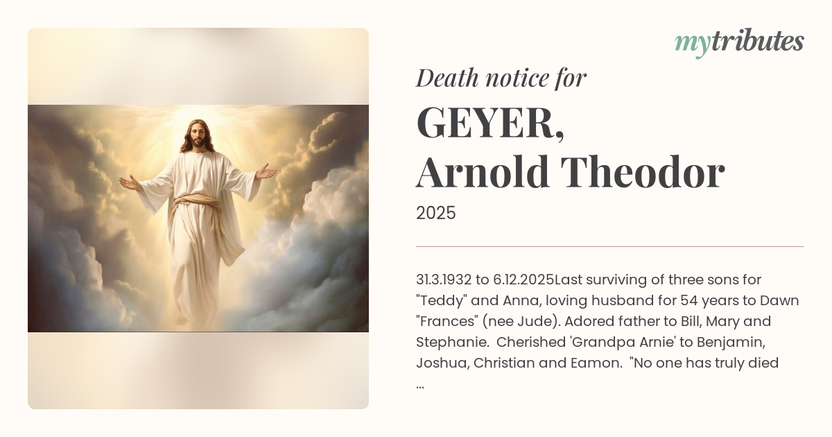 Adored father to Bill, Mary and Stephanie. Cherished 'Grandpa Arnie' to Benjamin, Joshua, Christian and Eamon.