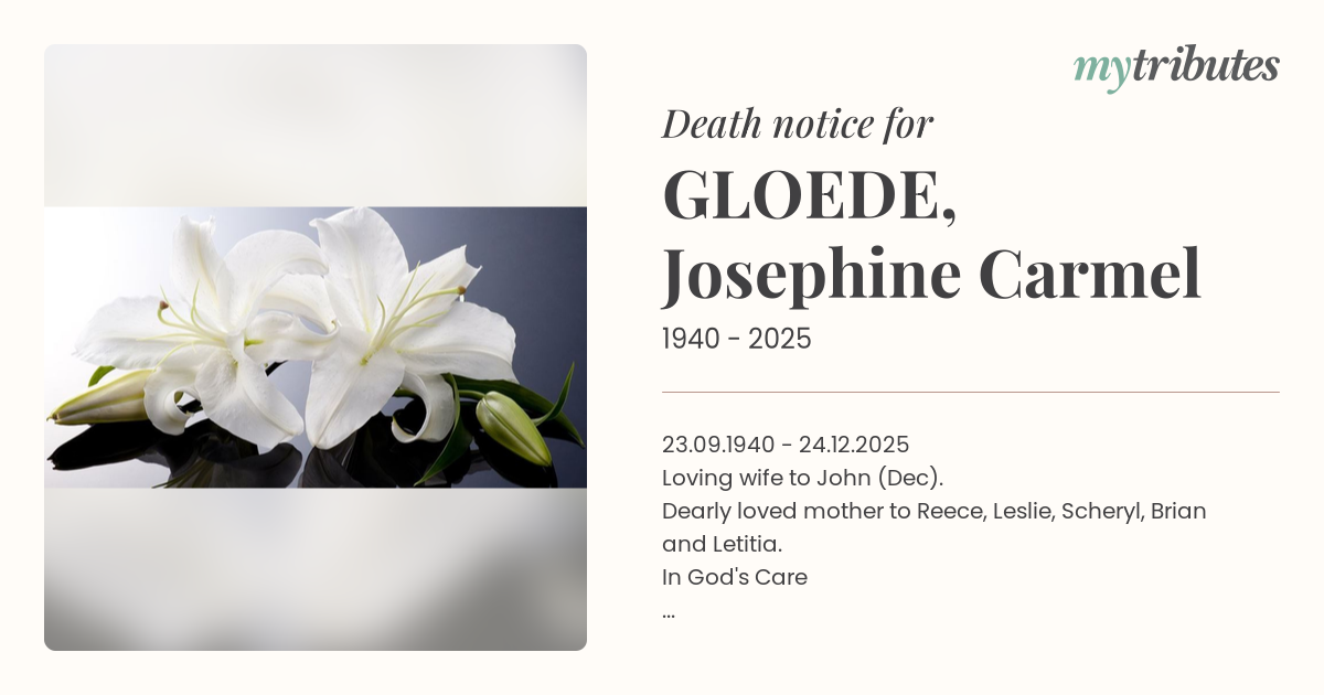 Dearly loved mother to Reece, Leslie, Scheryl, Brian and Letitia.