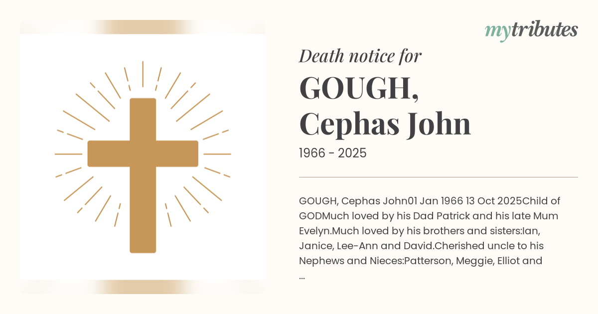 Much loved by his Dad Patrick and his late Mum Evelyn.