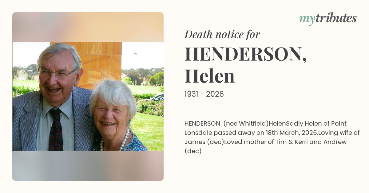 Sadly Helen of Point Lonsdale