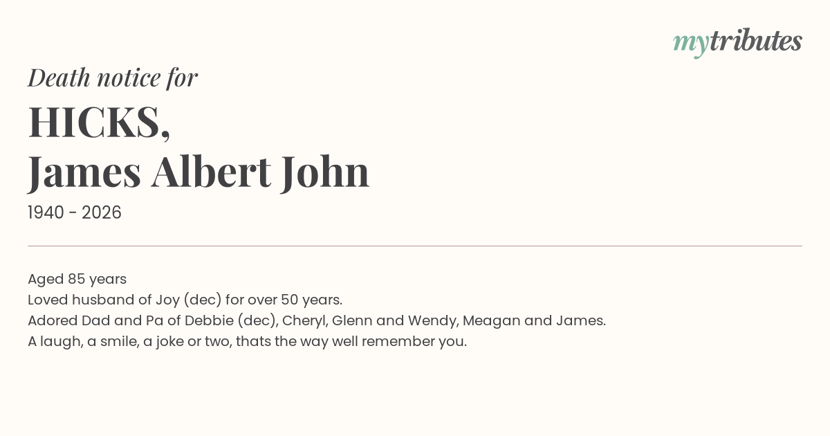 Adored Dad and Pa of Debbie (dec), Cheryl, Glenn and Wendy, Meagan and James.