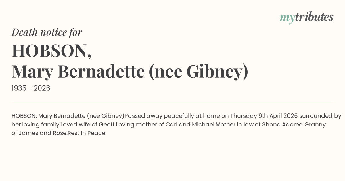 19°CHOBSON, Mary Bernadette (nee Gibney)