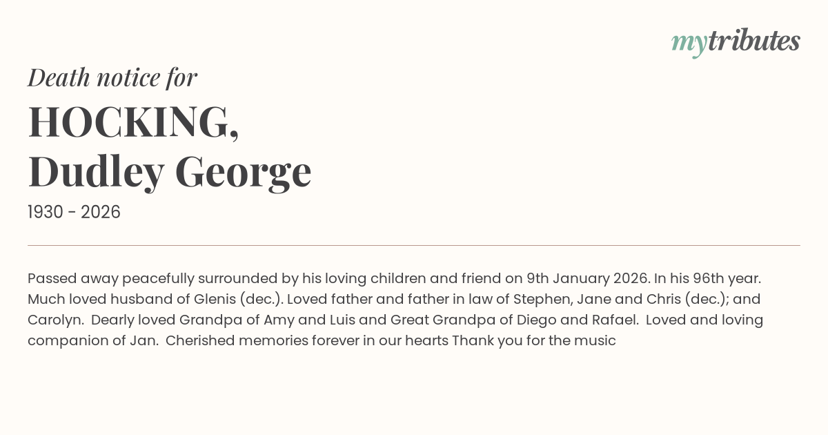 19°CPassed away peacefully surrounded by his loving children and friend on 9th January 2026.