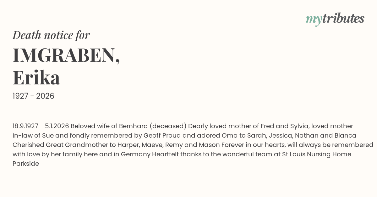 loved mother-in-law of Sue and fondly remembered by Geoff