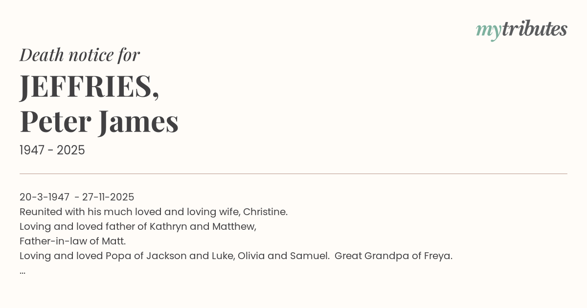 Loving and loved Popa of Jackson and Luke, Olivia and Samuel. Great Grandpa of Freya.
