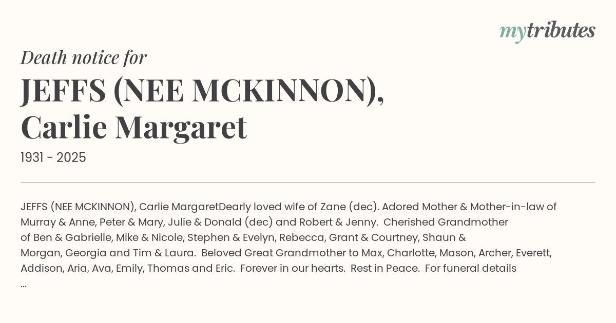 19°CJEFFS (NEE MCKINNON), Carlie Margaret