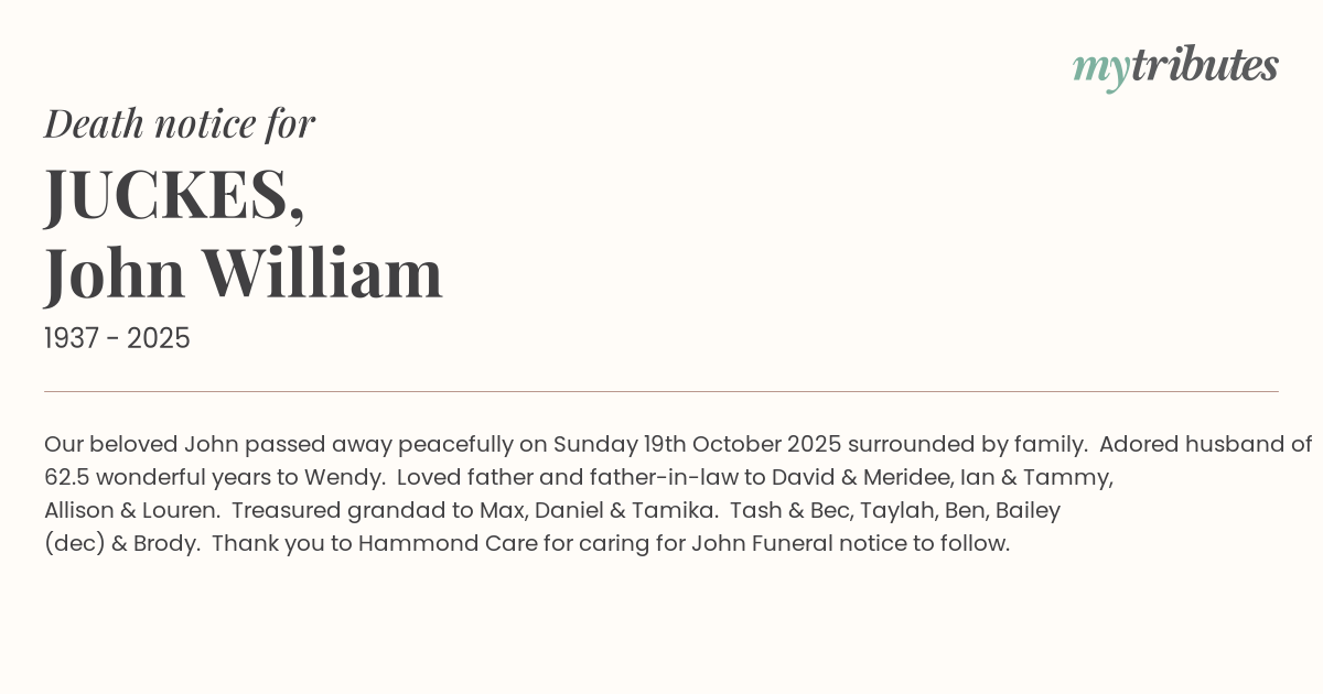 19°COur beloved John passed away peacefully on Sunday 19th October 2025 surrounded by family.