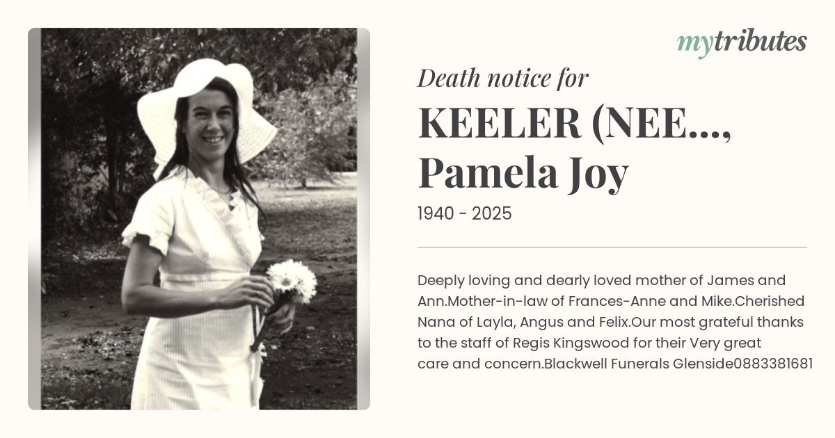 19°CDeeply loving and dearly loved mother of James and Ann.