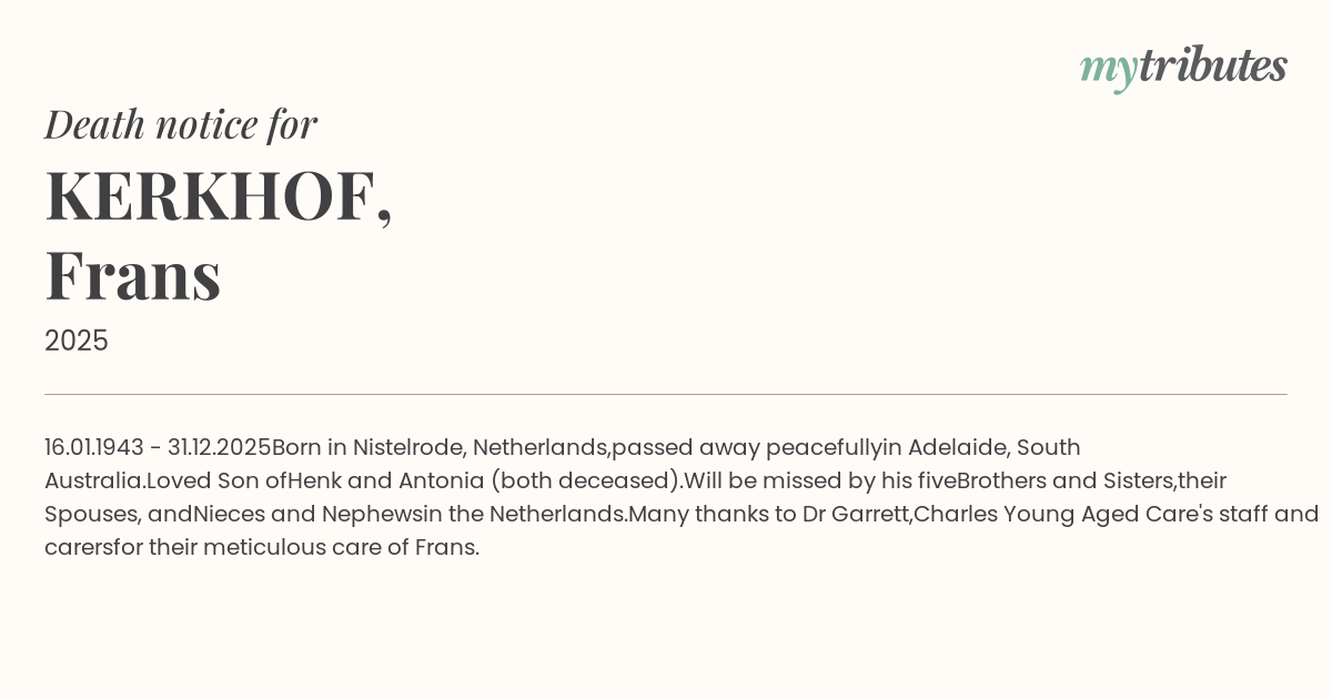 for their meticulous care of Frans.