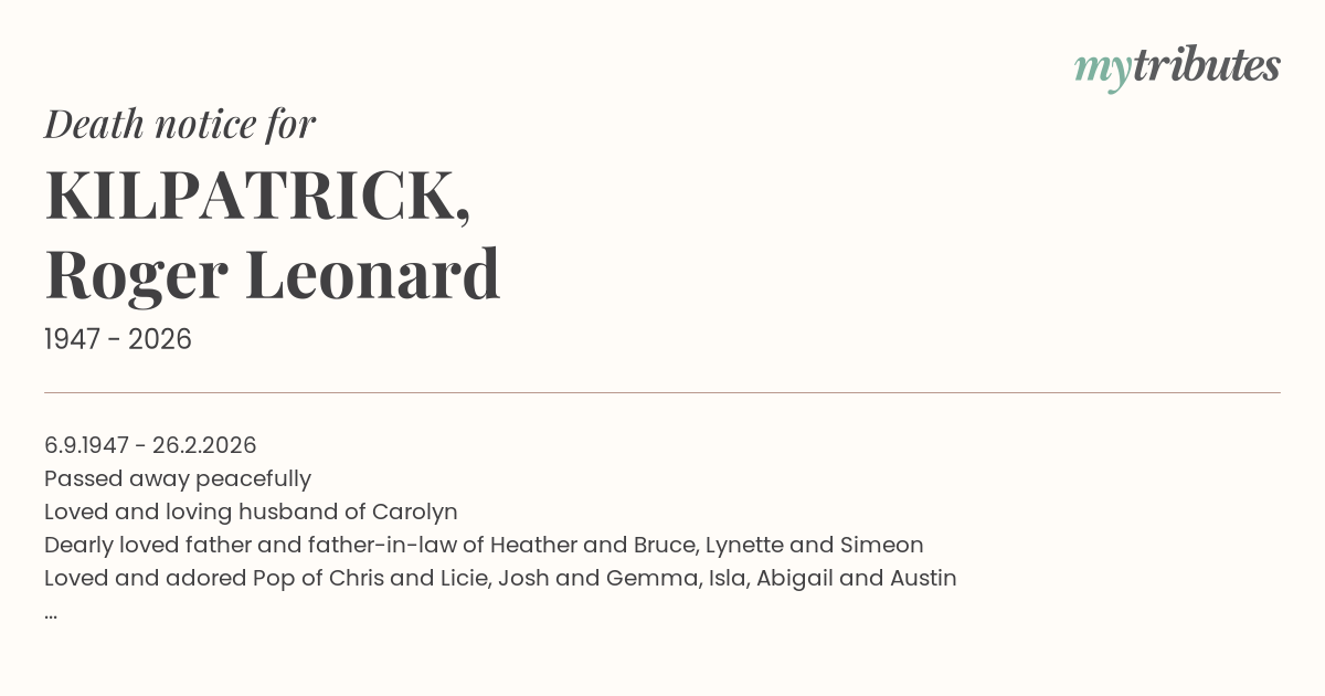 Dearly loved father and father-in-law of Heather and Bruce, Lynette and Simeon