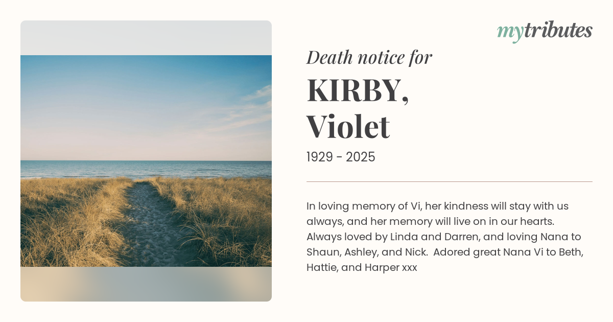 her kindness will stay with us always, and her memory will live on in our hearts.