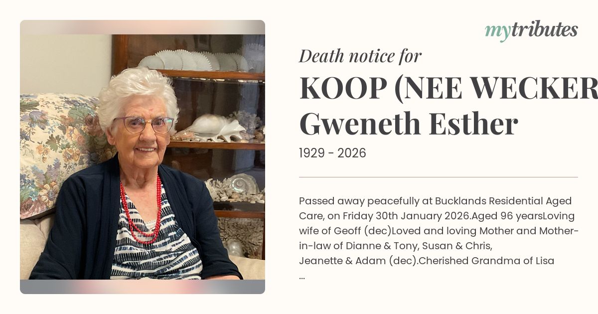 19°CPassed away peacefully at Bucklands Residential Aged Care,
