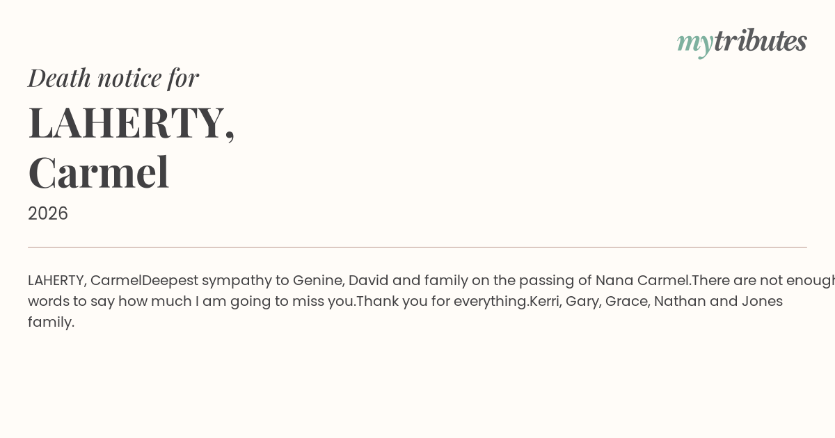 Deepest sympathy to Genine, David and family on the passing of Nana Carmel.