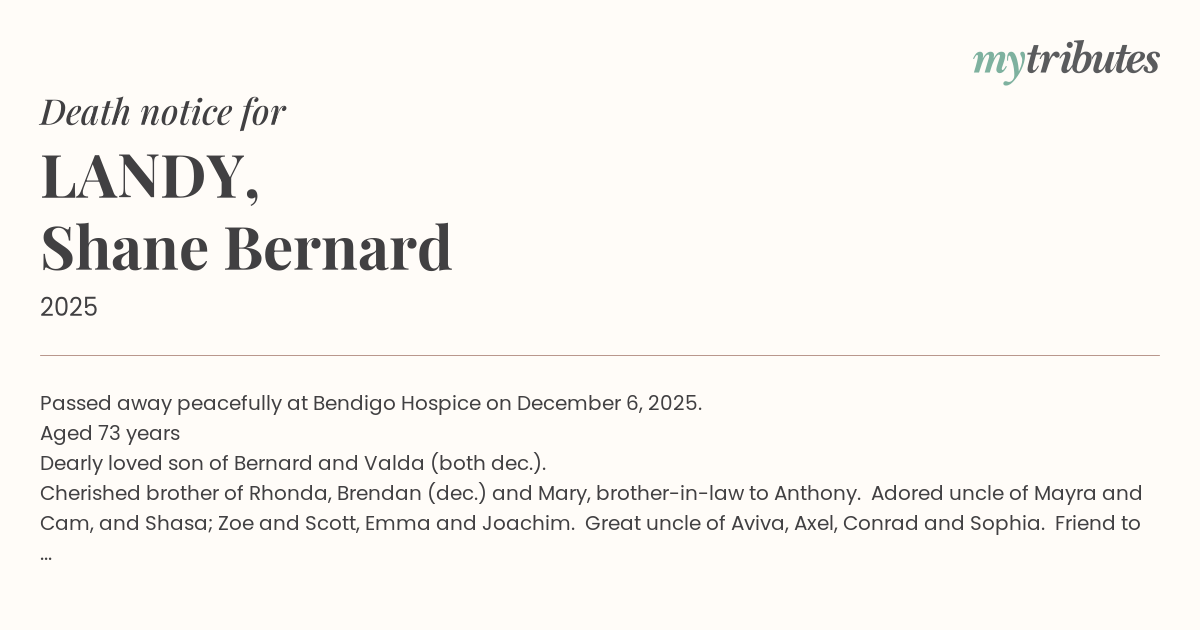 19°CPassed away peacefully at Bendigo Hospice on December 6, 2025.