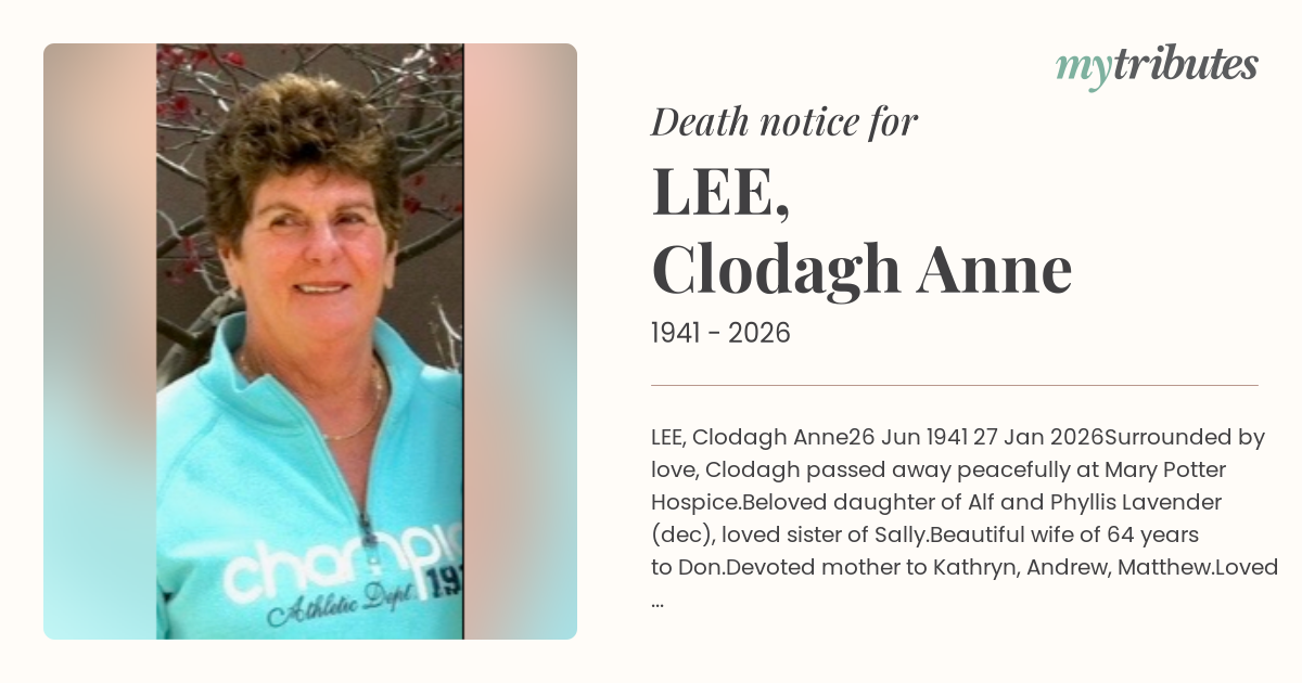 Surrounded by love, Clodagh passed away peacefully at Mary Potter Hospice.