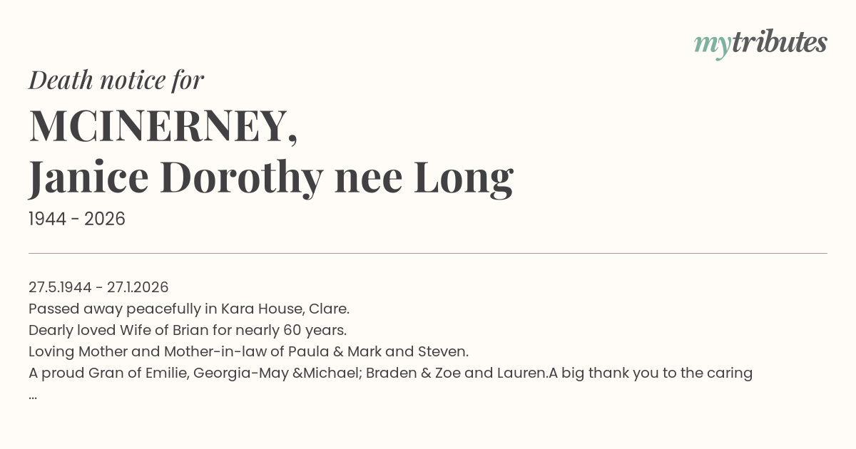 Loving Mother and Mother-in-law of Paula & Mark and Steven.