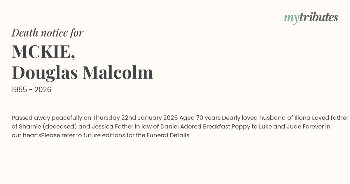 19°CPassed away peacefully on Thursday 22nd January 2026