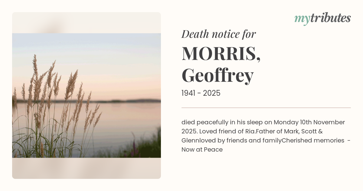 19°Cdied peacefully in his sleep on Monday 10th November 2025.
