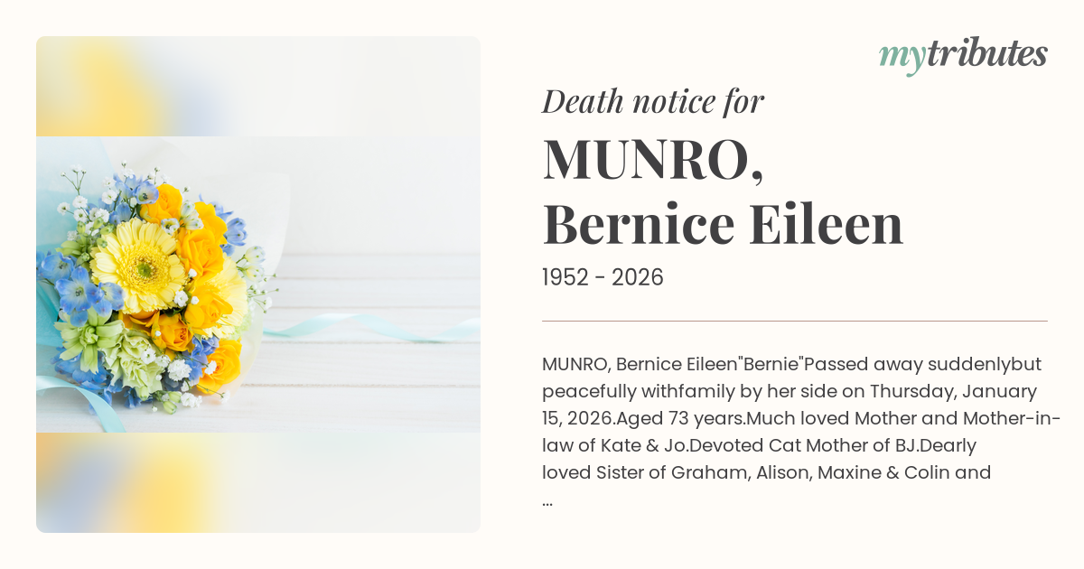 Much loved Mother and Mother-in-law of Kate & Jo.