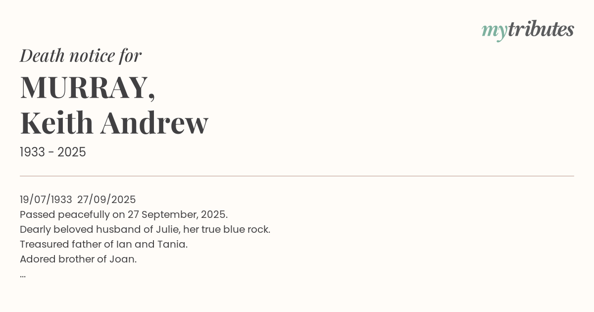 Keith lived a long and happy life with a strong heartbeat for music. His presence enriched the lives of all who knew him. One in a Million.