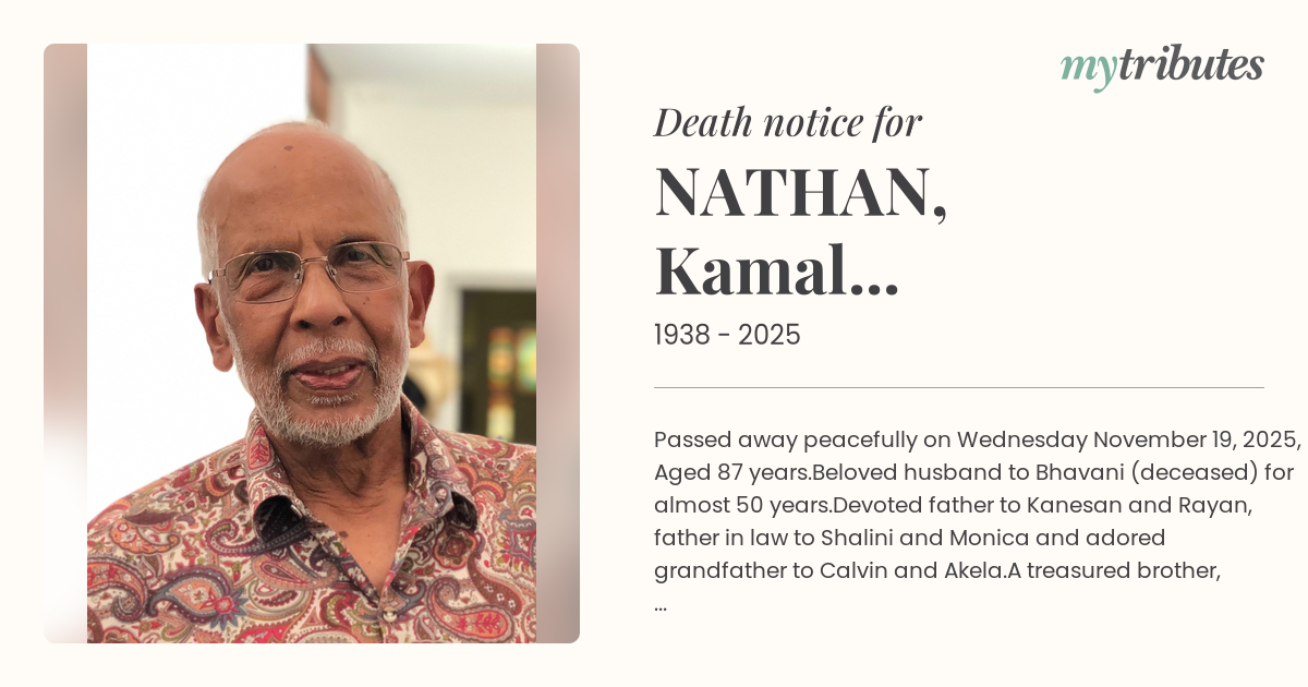 A treasured brother, uncle and friend to many, and a dedicated member of the Tamil community.