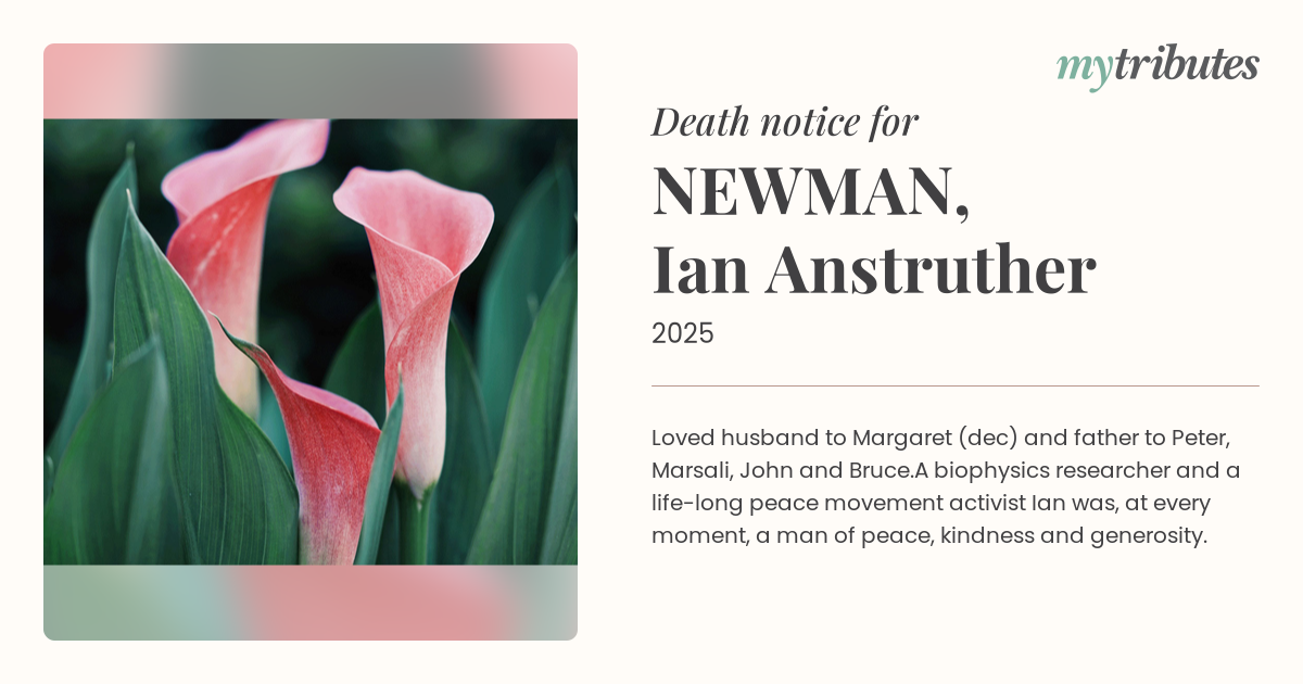 A biophysics researcher and a life-long peace movement activist Ian was, at every moment, a man of peace, kindness and generosity.