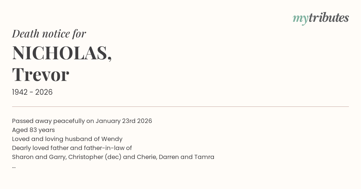 19°CPassed away peacefully on January 23rd 2026